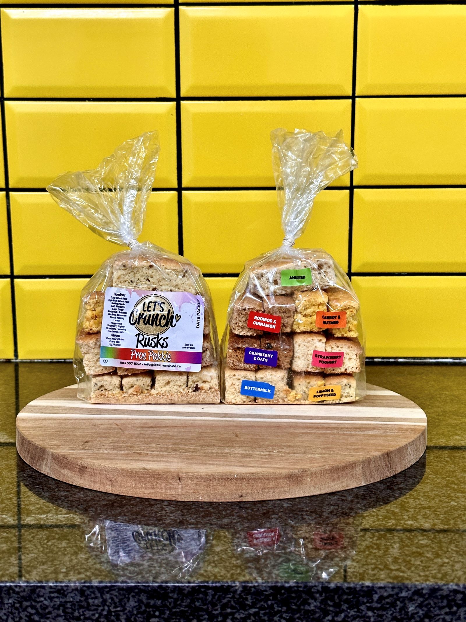 Our signature rusks are freshly baked to perfection, using only the finest ingredients and a dash of love.